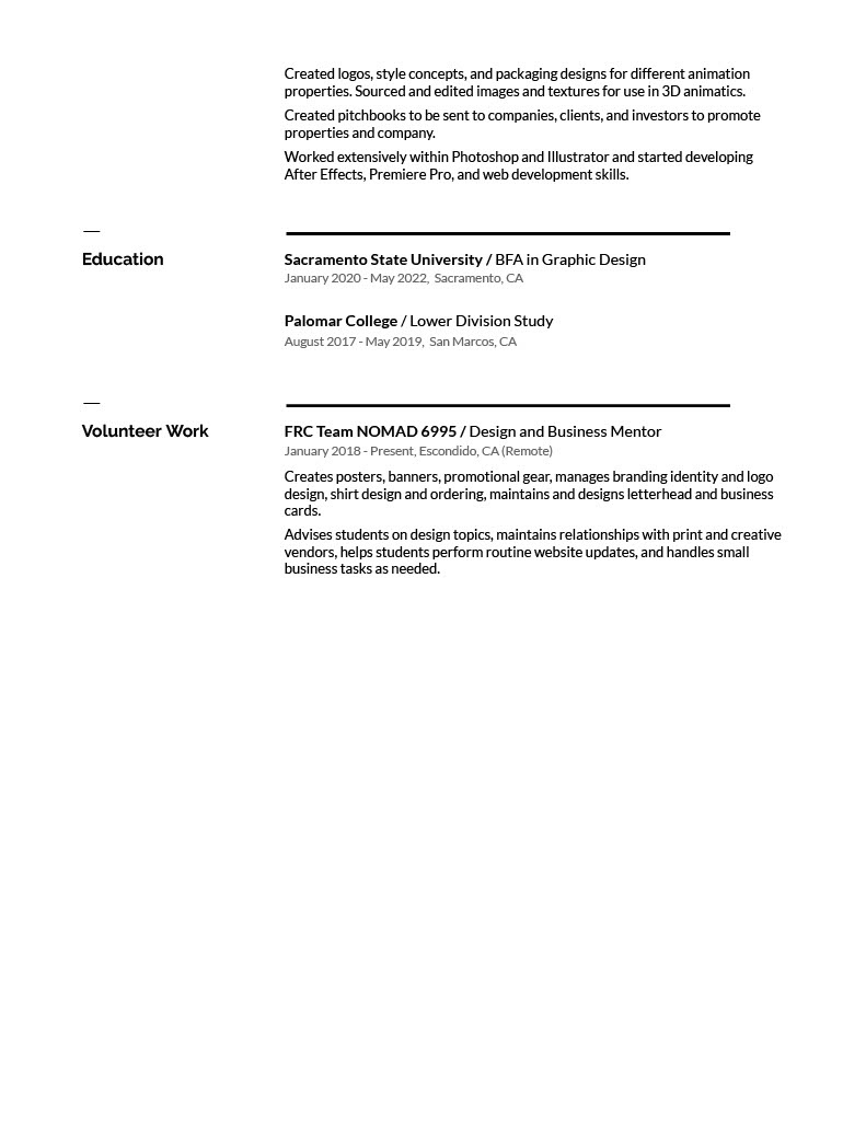 Worked extensively within Photoshop and Illustrator and started developing After Effects, Premiere Pro, and web development skills.